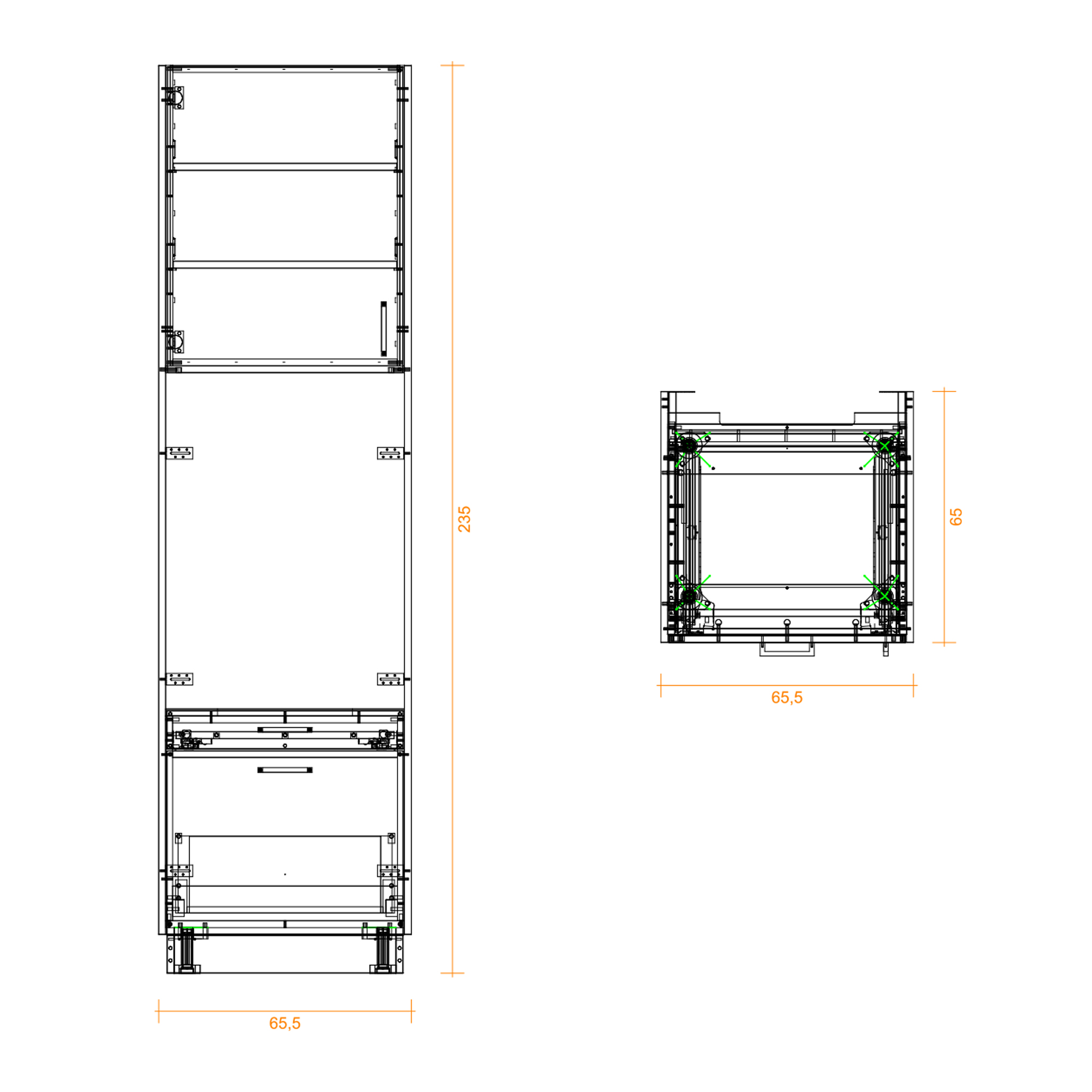 65,5 cm x 235 cm x 65 cm